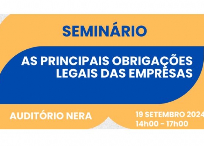 No âmbito do protocolo de cooperação estabelecido entre o NERA – Associação Empresarial da Região do Algarve e a PRA - Raposo, Sá Miranda & Associados, Sociedade Advogados, SP RL, vimos pelo presente informar V. Exa. sobre a realização do Seminário dedicado ao tema "As Principiais Obrigações Legais das Empresas", que terá lugar no próximo dia 19 de setembro, pelas 14h00m, nas instalações do NERA, em Loulé.