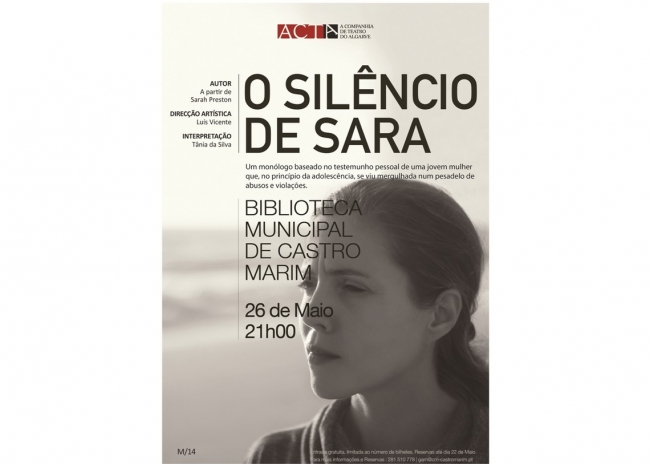 A Biblioteca Municipal de Castro Marim recebe, no próximo dia 26 de maio, pelas 21h00, a produção da ACTA (A Companhia de Teatro do Algarve), «O Silêncio de Sara»