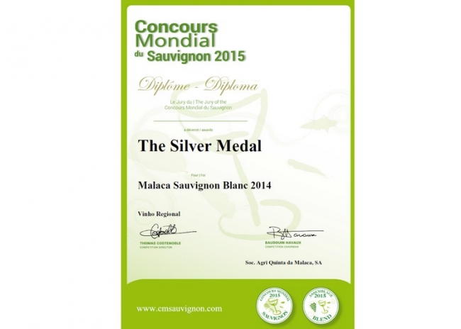 O vinho Malaca Sauvignon Blanc 2014 (Sociedade AgrÃcola Quinta da Malaca, SA - Albufeira) ganha medalha de prata no Concurso Mundial de Sauvignon, que decorreu dias 22 e 23 de Maio, em Veneza.