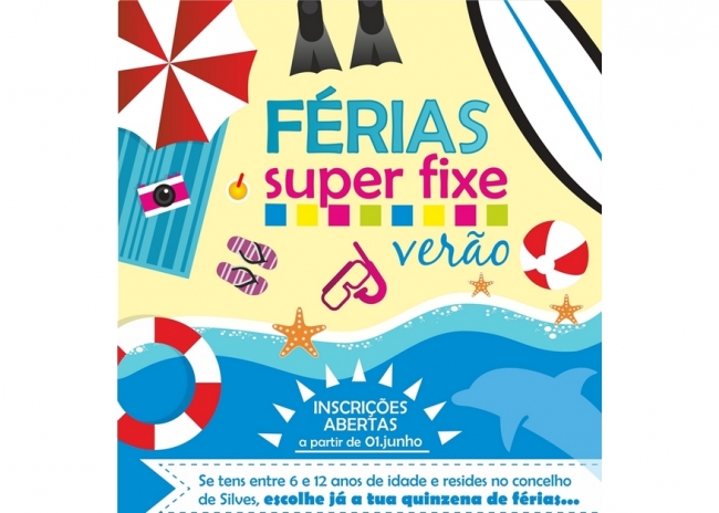 O período de inscrições para o programa de ocupação de tempos livres «Férias Super Fixe – Verão» abre no próximo dia 1 de junho. A iniciativa, promovida pela Câmara Municipal de Silves /CMS), é dirigida a crianças e jovens do concelho, com idades compreendidas entre os 6 e os 12 anos, e irá decorrer entre 15 de junho e 24 de julho.