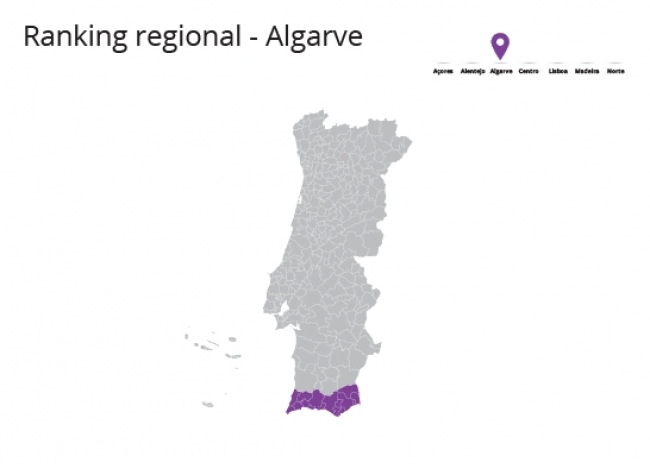 Os municípios algarvios dominam 5 dos 10 primeiros lugares deste Ranking, sendo encabeçados por Albufeira no 3º Lugar, com Portimão, Tavira e Lagos entre o 6º e 8º lugares e Faro em 10º lugar.