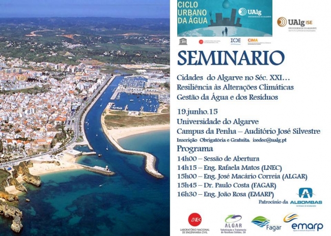 O Instituto Superior de Engenharia (Campus da Penha), da Universidade do Algarve vai acolher no Auditório José Silvestre o Seminário "Cidades do Algarve no Séc. XXI - Resiliência às Alterações Climáticas e Gestão da Água e dos Resíduos", que se vai realizar no próximo dia 19 de Junho.