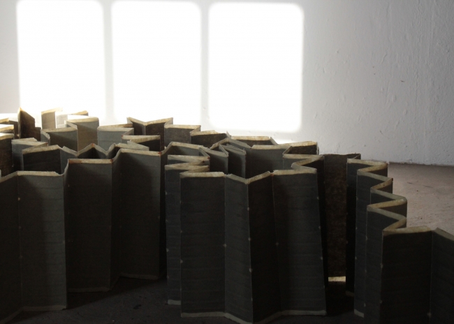 Nesta exposição a artista apresenta-nos um tema imensamente divisível, que é a dobra. Há o dobrar, desdobrar, redobrar incessantemente os espaços e as temporalidades da experiência criando trocas constantes entre o mundo exterior e o mundo interior. Entre o infinitamente grande do Universo e o infinitamente pequeno do viver.