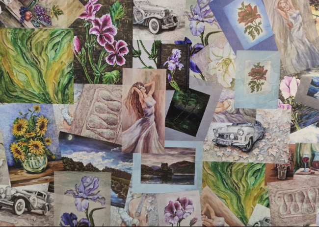 As obras de arte mundiais que estudara, e que só via nos livros, estavam agora tão perto que até podia tocar-lhes. Fazendo da pintura o seu hobby, experimentou aguarela em seda, guache, tintas a óleo, tendo priorizado cada vez mais as tintas acrílicas, e em obras cada vez mais variadas e volumosas.