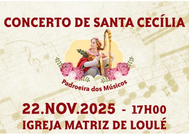 Considerando que a Santa Cecília é a Padroeira da música e dos músicos, a Sociedade Filarmónica Artistas de Minerva (SFAM) promove a realização de um concerto no dia 22 de novembro de 2025, às 17h00, na Igreja Matriz de Loulé.