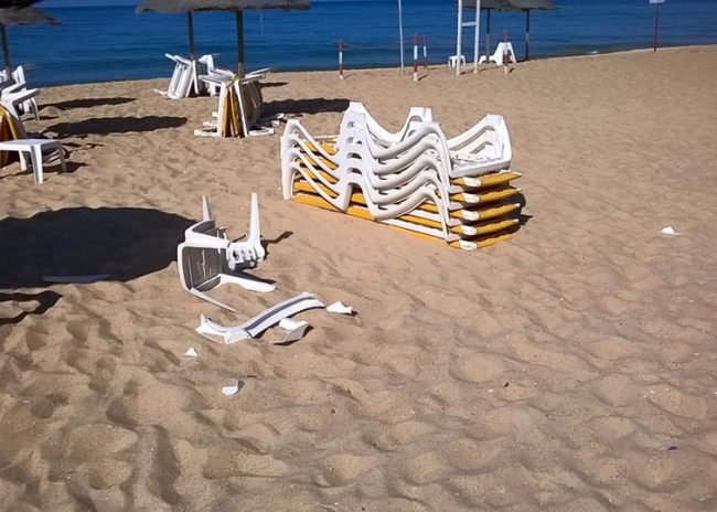 Um grupo de jovens estrangeiros com idades entre os 16 e 20 anos, presumivelmente alcoolizados vandalizaram mesas e camas de praia assim como colmos e material de segurança de alguns estabelecimentos daquela zona.