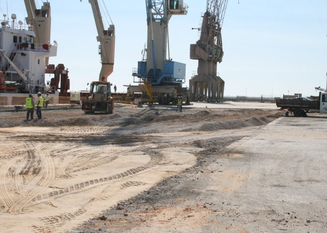 Em Faro, procedem-se aos trabalhos de reparação do caminho de rolamento dos guindastes, encontrando-se a área de jurisdição do porto a ser alvo de ordenamento e requalificação.