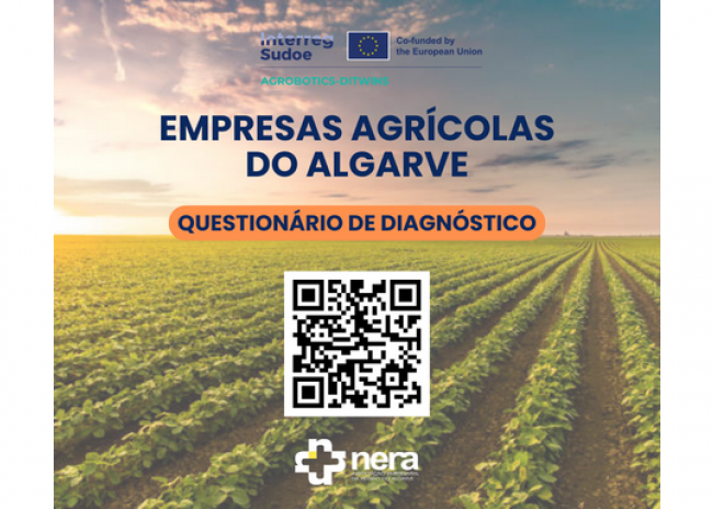 No âmbito do projeto AGROBOTICS-DITWINS, encontra-se atualmente em curso a aplicação de um questionário de diagnóstico dirigido às empresas agrícolas da região do Algarve, destinado a recolher informação estratégica que permita alinhar o desenvolvimento de soluções tecnológicas do setor.