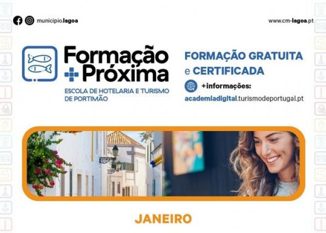 O Município de Lagoa em cooperação com o projeto Formação +Próxima possibilitado pela Escola de Hotelaria e Turismo de Portimão – EHTPtm, tem programado para o mês de janeiro 2 formações a ocorrer no concelho de Lagoa com a finalidade de conseguir capacitar os recursos humanos que procuram usufruir deste conhecimento.