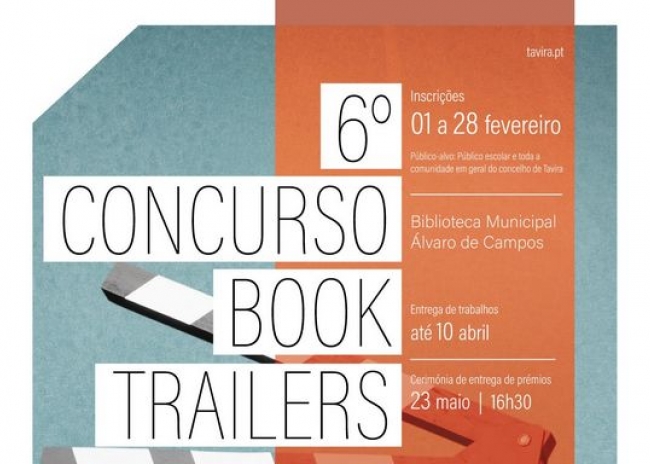 O Município de Tavira e a Rede de Bibliotecas de Tavira lança a 6ª. Edição do Concurso Book Trailers, no concelho, com o objetivo de dinamizar e promover a leitura, a cultura e as bibliotecas, incentivando a criatividade literária e multimédia dos alunos do concelho e público em geral.