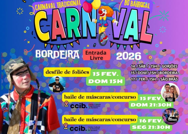 A Sociedade Recreativa Bordeirense orgulha-se de anunciar o regresso do Carnaval de Bordeira 2026, um dos eventos mais autênticos e vibrantes da região do Barrocal algarvio.