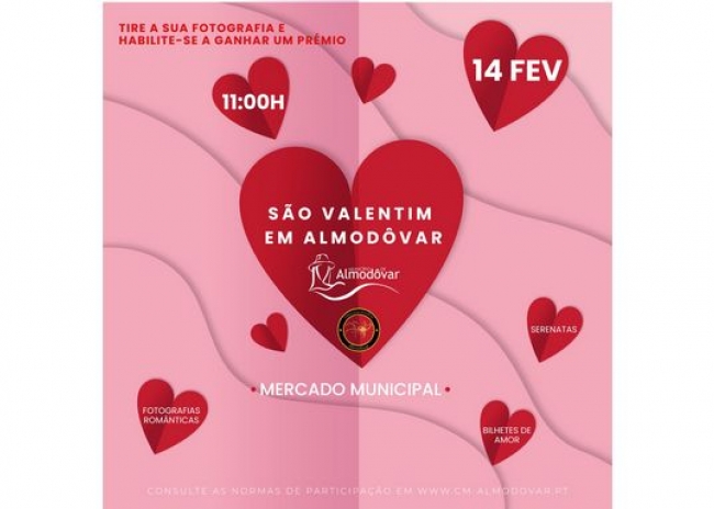 Almodôvar prepara-se para assinalar o Dia de São Valentim com a iniciativa «São Valentim em Almodôvar», marcada para o próximo sábado, dia 14 de fevereiro de 2026, a partir das 11h00, no Mercado Municipal.