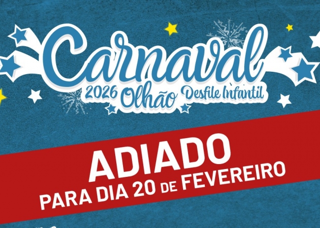 O Município de Olhão informa que, devido à previsão de condições meteorológicas adversas, nomeadamente vento forte, para a manhã de 13 de fevereiro, foi decidido adiar o Desfile de Carnaval Infantil para o próximo dia 20 de fevereiro.