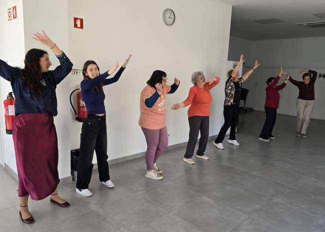 A sua mestria revelou-se na forma como adaptou os exercícios, como explicou cada movimento e como incentivou a participação ativa e criativa de cada uma das presentes. Mas foi a sua alegria genuína que verdadeiramente marcou a tarde. Um sorriso constante que contagiou e transformou a sala num espaço de partilha e felicidade. A sessão, cuidadosamente estruturada, percorreu várias fases: Aquecimento inicial – para despertar o corpo e preparar os músculos Exploração corporal – movimento parte a parte (cabeça, mãos, braços), para tomar consciência das possibilidades do corpo Aprendizagem de duas coreografias – com escolha democrática da preferida para apresentação futura Partilha de movimentos – cada participante deu o seu movimento e aprendeu os das outras Alongamento final e relaxamento – para que os músculos percebessem que o exercício físico ia terminar O momento de partilha de opiniões no final foi, nas palavras de Iara, "sempre muito importante", permitindo que cada uma expressasse como se sentiu e o que a experiência lhe proporcionou.