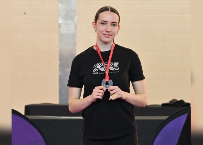 A estudante-atleta da Universidade do Algarve Angelina Lesik Guerreiro Rodrigues, do curso de Ciências Farmacêuticas, conquistou a medalha de prata no Campeonato Nacional Universitário (CNU) de Karaté, na categoria Kumité +68 kg feminino, naquela que foi a sua estreia em Campeonatos Nacionais Universitários.