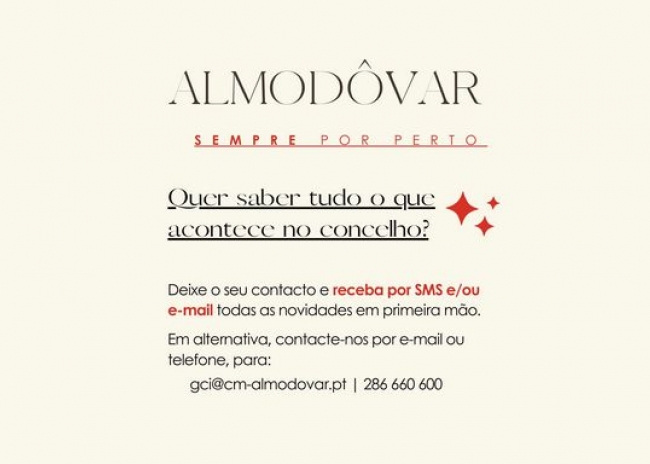 O Município de Almodôvar procedeu ao lançamento de um novo serviço gratuito destinado a todos os munícipes e não só, que permite receber informações sobre atividades, iniciativas e eventos promovidos pela autarquia diretamente no telemóvel ou no e-mail.