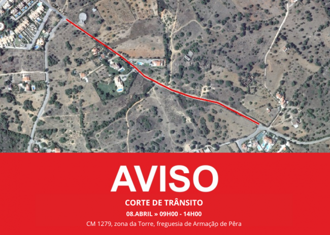 CORTE DE TRÂNSITO, DIA 08 DE ABRIL, NO CM 1279 (ZONA DA TORRE), NA FREGUESIA DE ARMAÇÃO DE PÊRA