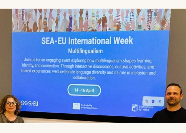 Os docentes Neuza Costa e Pedro Sousa, da Faculdade de Ciências Humanas e Sociais (FCHS) da Universidade do Algarve, participaram na SEA-EU International Week dedicada ao Multilingualismo, organizada pela Universidade de Malta, que decorreu entre os dias 14 e 16 de abril, em Valletta.