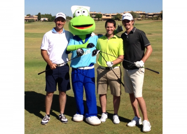 David Moura, o coordenador do Projecto Drive, juntou no Algarve todos os “padrinhos” para uma fotografia com a mascote do Programa de Desenvolvimento Juvenil, o sapo, mesmo antes dos jogadores viajarem ao Madeira Islands Open BPI.