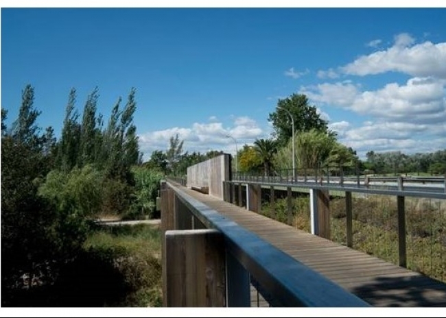 Com este projeto, concebido pelo estúdio And-Ré, com sede no Porto, a equipa pretendeu também quebrar a relação do utilizador que atravessa a ponte com a estrada paralela, em termos de ruído sonoro e visual, direcionando a atenção dos peões para o lago e campo de golfe adjacentes.