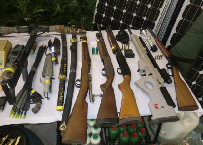 Para além do armamento apreendido, parte dele calibre de guerra, destacam-se as plantas de canábis, cultivadas no terreno envolvente à habitação, bem como os diversos produtos associados ao seu cultivo e acondicionamento, onde se incluem inúmeras embalagens de produto fertilizante.